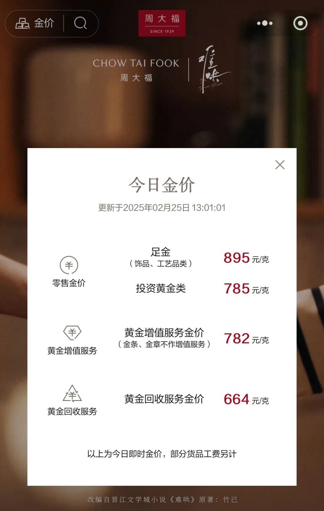 今天(2月25日),国内多个品牌的足金饰品价格集体上调,直逼900元/克,其中,周大福的足金饰品零售价格为895元/克。