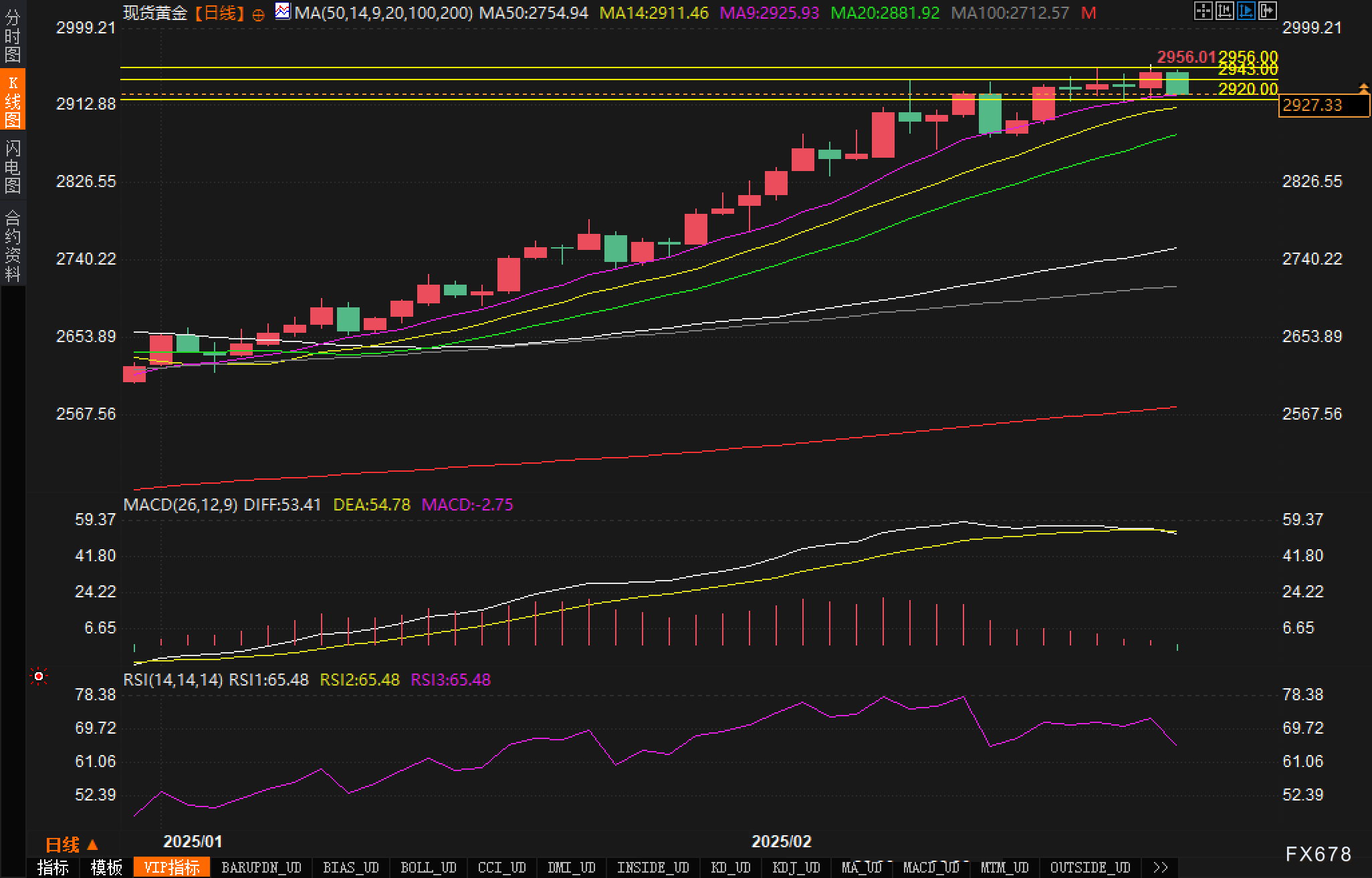 从技术面来看,黄金价格在周一创下2956美元的历史新高后,短期内出现了明显回落。当前金价约在2930美元附近,市场情绪略显悲观。