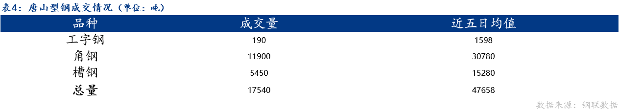2、成交量为20家型钢厂当日成交,其中包括工字钢6家、角钢7家、槽钢7家。