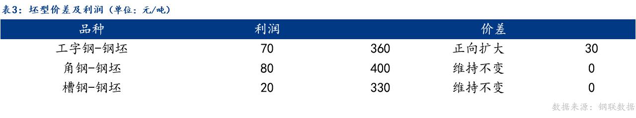 从品种价差来看,今日唐山钢坯与工字钢价差正向扩大,与槽钢、角钢价差维持不变。