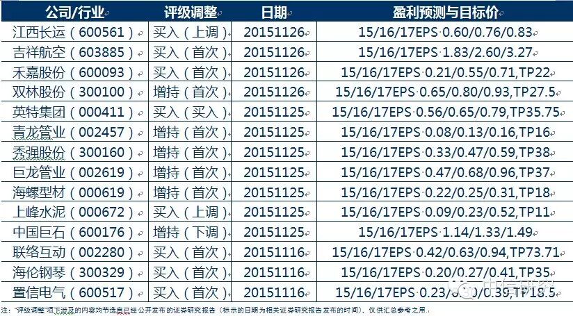 水泥行业:淡化内需,聚焦海外和改革转型;“走出去”公司优先推荐上峰水泥、华新水泥和海螺水泥。国企改革建议关注中材集团旗下天山股份、宁夏建材和祁连山以及地方国企之金隅股份、冀东水泥和万年青等,维持“强于大市”评级。新材料行业:转型有望遍地开花,积极把握三类投资机会,个股关注长海股份、伟星新材、开尔新材、中材科技、友邦吊顶、海螺型材、青龙管业、巨龙管业等。玻璃行业:产能去化缓慢,关注转型个股如秀强股份。(20151125)