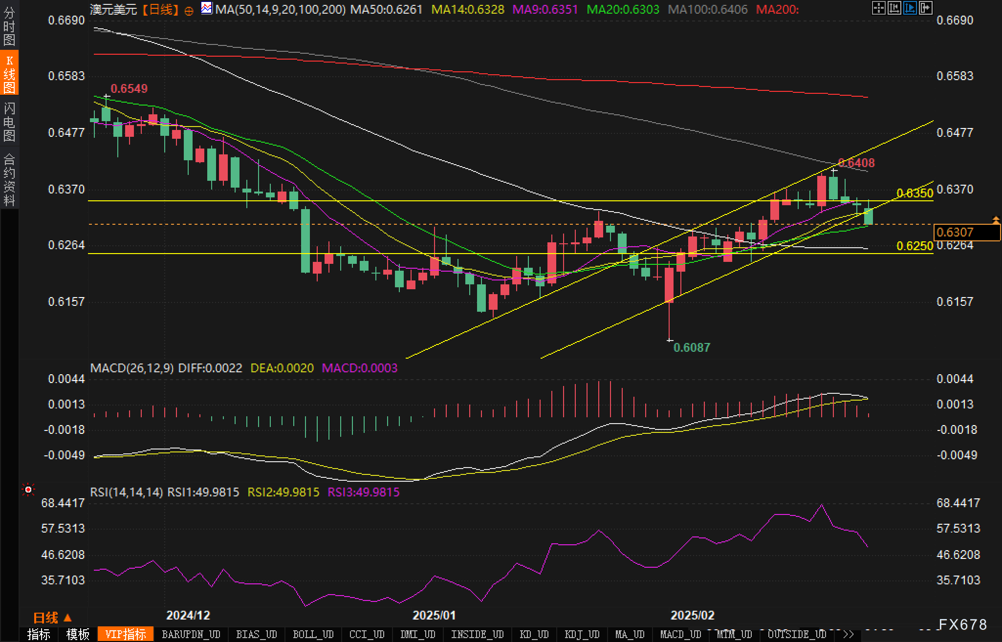 从上行阻力的角度来看,0.6350和0.6400是近期的技术性阻力位。如果汇价反弹并突破这些水平,可能会有短期的修复行情,但在美元强势的环境下,这种反弹空间相对有限。突破0.6400水平后,汇价才有可能迎来进一步的反弹。