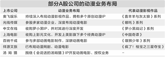 对动漫游戏产业感兴趣的不乏上市公司。A股公司中,光线传媒、奥飞娱乐、中文在线、上海电影等近年来都在持续加码动画业务。