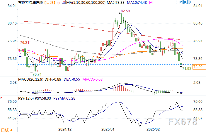 北京时间2月27日10:35布伦特原油连续报72.33美元/盎司