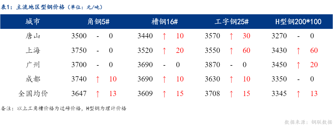 今日开市,市场价格大多报价持稳,价格上涨与昨日下午。消息刺激力度时间持续较短,无法对价格上涨提供长时间的动力,需求端的复苏也较为迟缓。综合来看,预计明日全国型钢市场价格持稳运行。
