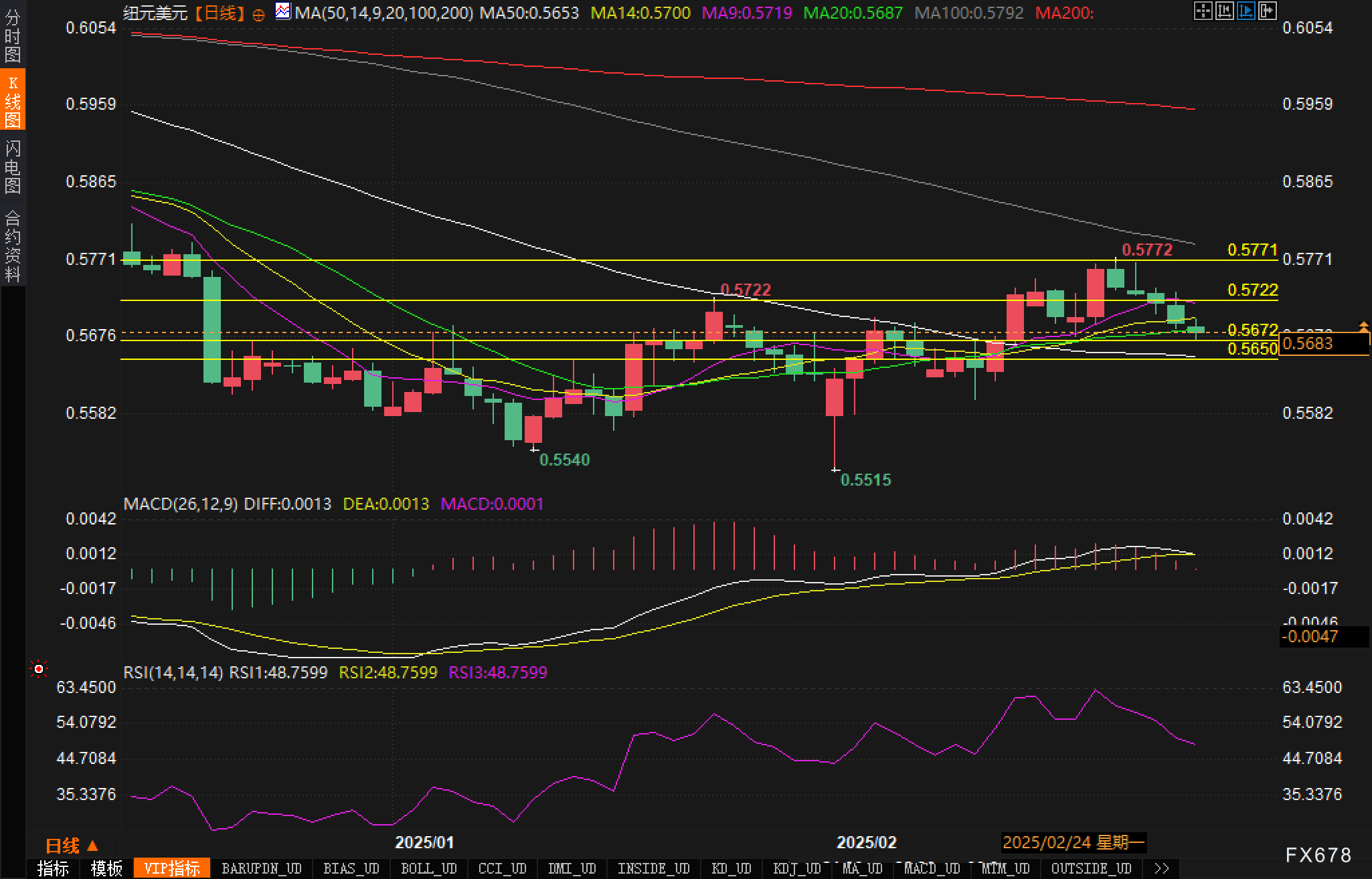 汇通财经APP讯——周四(2月27日)欧洲交易时段,纽元/美元在连续五个交易日走低的趋势下,进一步回落,交易价位维持在0.5680附近。美元的强势表现成为纽元持续承压的主要原因。美元的上涨受到美国国内不确定性增加的推动,尤其是美国总统特朗普关于关税政策的模糊表态,令市场情绪趋向风险规避,并推高了美元的需求。此外,美国国债收益率的上涨也进一步支撑了美元。