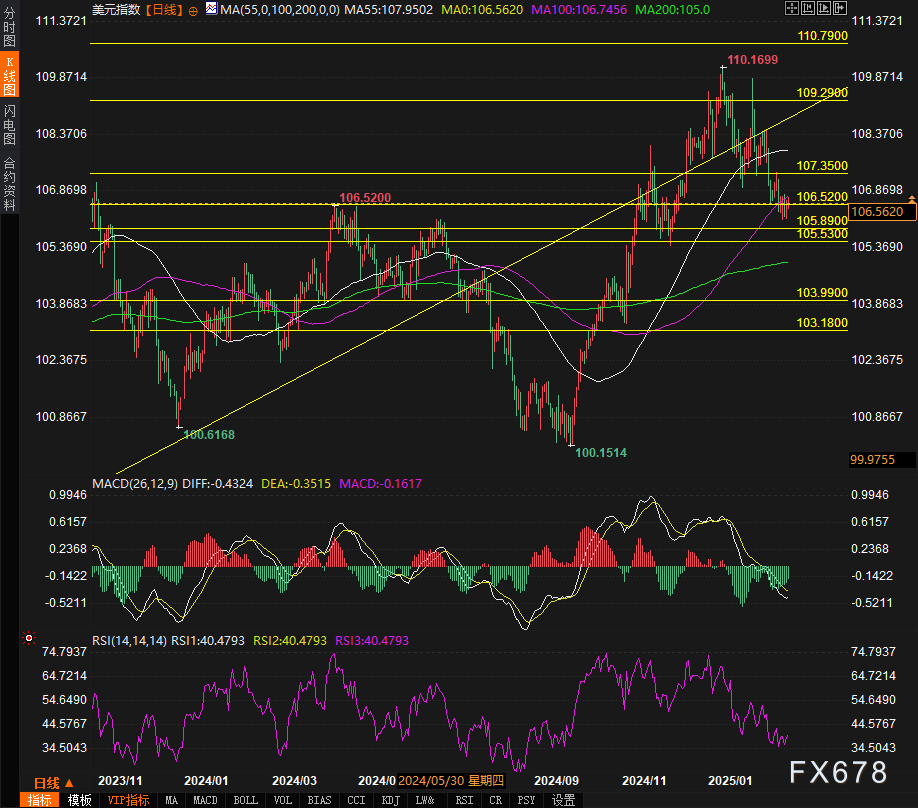 短期内,美元走势可能会继续受到关税言论的不确定性和即将发布的经济数据的影响。尽管目前的技术面仍然显示出美元面临一定的阻力,但若后续经济数据强劲,特别是PCE数据和GDP修正值符合市场预期,可能会推动美元重新站上107的技术水平,甚至测试107.95附近的高位。