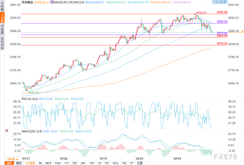 汇通财经APP讯——周四(2月27日)欧盘时段,黄金正努力摆脱下跌趋势,徘徊在2895美元左右,但仍保持在关键的2875美元关口上方。由于美国国债收益率上升,美元走强,黄金这一贵金属面临压力,作为非生息资产的吸引力有所下降。美元指数近期的上涨反映出投资者的乐观情绪,进一步抑制了对黄金等避险资产的需求。