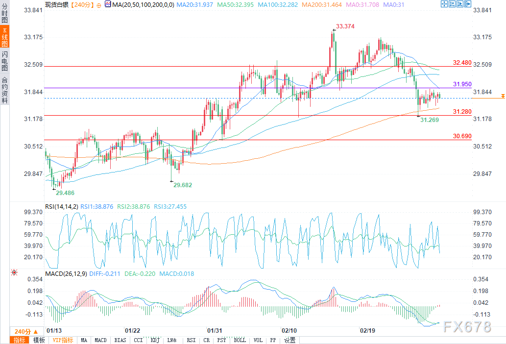 白银(XAG/USD)在触及31.54美元的日内低点后,目前报31.76美元,受到强势美元和不断上升的国债收益率的压力。与黄金一样,在股市牛市中,投资者转向风险更高的资产,白银也面临抛售压力。