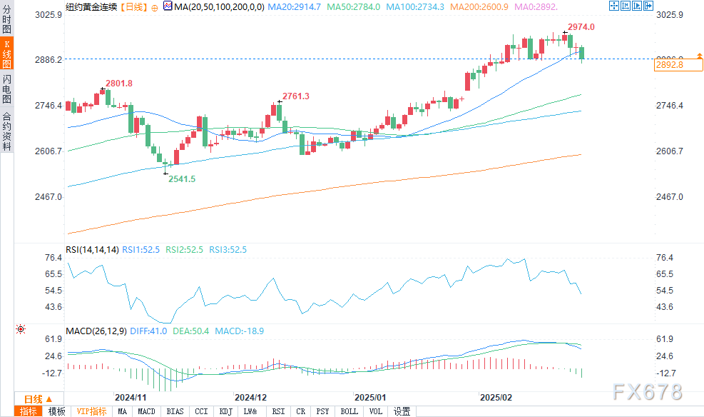 从技术层面来看,4月黄金期货多头在整体短期技术面占据明显优势。然而,日线图上的价格上升趋势已停滞。多头的下一个上行价格目标是收盘价高于2974.00美元这一强劲阻力位(该合约的高点)。空头的下一个短期下行价格目标是将期货价格推低至2800.00美元这一强劲技术支撑位下方。第一阻力位在隔夜高点2935.80美元,然后是2950.00美元。第一支撑位在隔夜低点2889.40美元,然后是2875.00美元。
