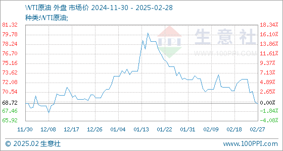 2月28日生意社WTI原油基准价为68.62美元/桶