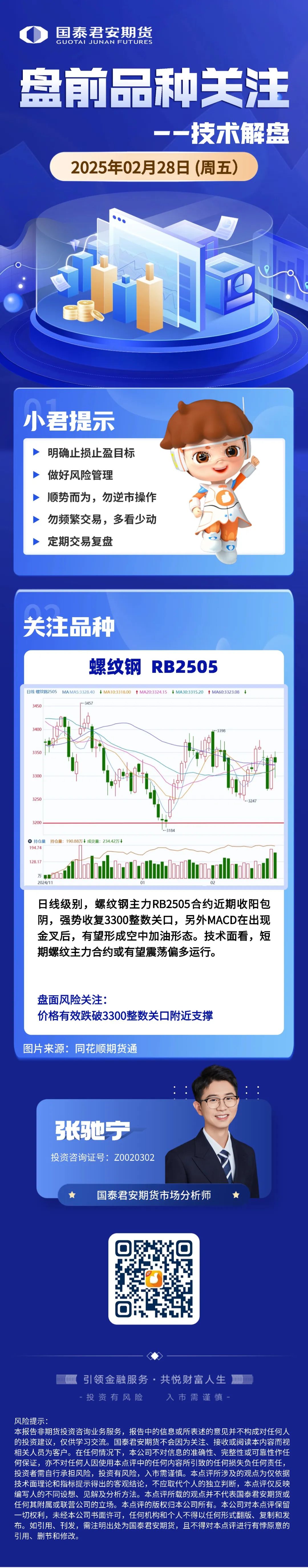 今日重点关注:豆一、纯碱。美国四季度实际GDP年化季环比修正值2.3%符合预期,PCE物价指数上修至2.7%