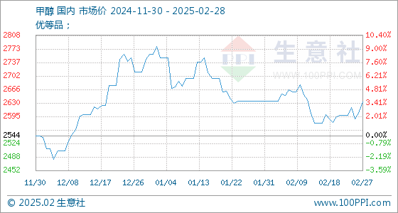 2月28日,生意社甲醇基准价为2634.17元/吨,与本月初(2635.83元/吨)相比,下降了-0.06%。