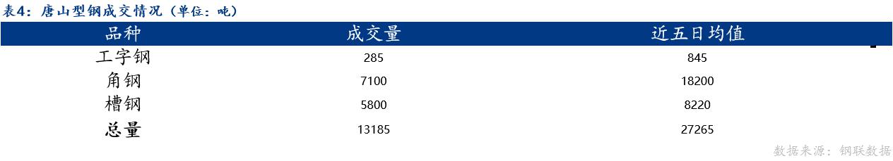 2、成交量为20家型钢厂当日成交,其中包括工字钢6家、角钢7家、槽钢7家。