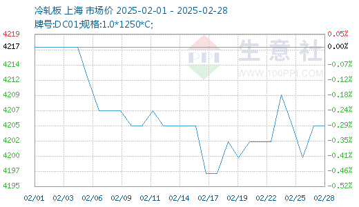 据生意社商品行情分析系统,截止2月28日,国内热轧板卷市场均价3410元/吨,月环比下跌0.81%;国内冷轧板市场均价4205元/吨,月环比下跌0.30%。当前冷热产品差价在795元/吨左右。