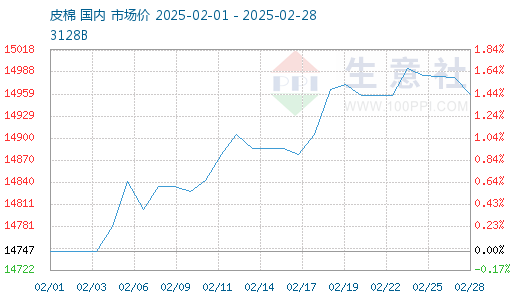 2月国内棉价走势上行,国内宏观环境积极,提振市场信心;叠加国内纺织传统旺季将至,纺企开机率回升,市场预期有所好转,对国内棉价形成有利支撑。据生意社商品行情分析系统,截至2月28日3128B级皮棉现货价格在14958元/吨,较月初上涨1.43%。