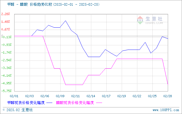 生意社甲醇-醋酸(下游产品)价格走势比较图: