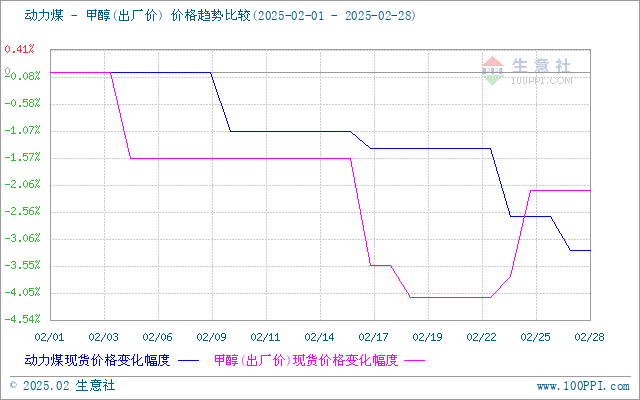 生意社煤炭/动力煤(上游原料)-甲醇价格走势比较图: