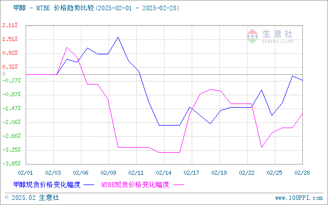 生意社甲醇-MTBE(下游产品)价格走势比较图: