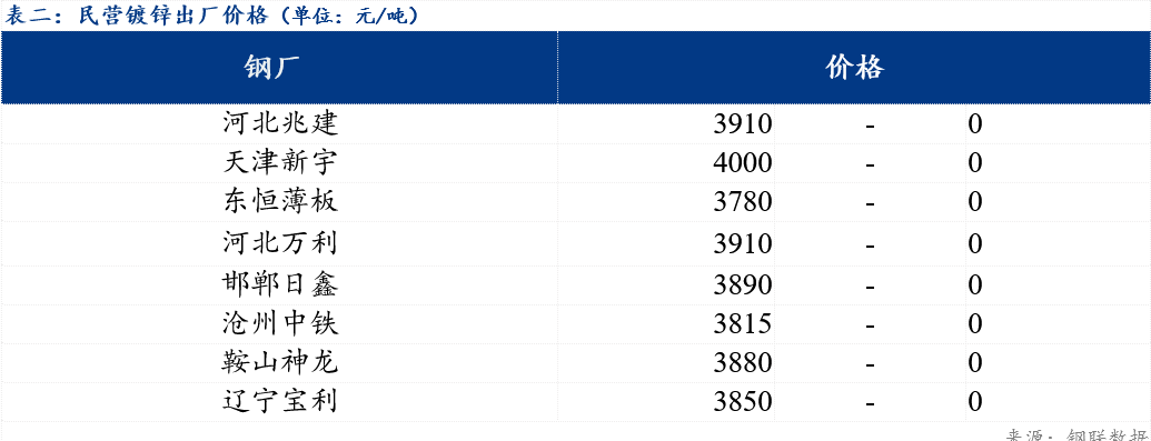 今日北方民营钢厂镀锌出厂指导价在3780元/吨-4000元/吨。