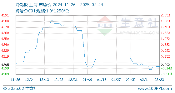2月24日生意社冷轧板基准价为4202.50元/吨