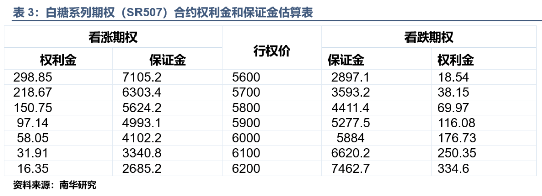 本文基于二叉树模型,利用2月28日白糖SR507合约的收盘价,估算出的波动率10.20%以及一年期定期存款基准利率估算出平值附近系列期权的权利金和保证金,供投资者参考。
