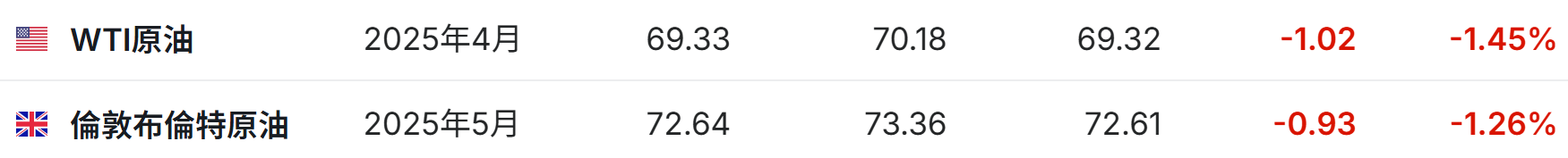 3. 截至发稿,WTI原油跌1.45%,报69.33美元/桶。布伦特原油跌1.26%,报72.64美元/桶。