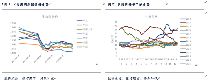 3月期间,预计生猪供应压力可能有所恢复,一方面从前期产能变化情况来看成猪数量可能有所增加,另一方面,前期养殖端压栏惜售也有所增多。此外,当前生猪出栏体重较此前已经有所增加。不过,仍然需要关注压栏情况以及二育的表现。总体来看,现货价格重心大概率将逐步下移。