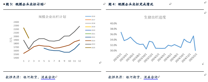 一、供应端:产能释放叠加养殖端降重供应压力释放明显2月期间,全国各地生猪价格整体呈现窄幅震荡运行态势,价格中枢较上月整体有所下移。截止2月27日,全国各地生猪均价14.64元/公斤,较上月末下跌1.81元/公斤左右,整体跌幅较此前有所缩窄。综合来看,近期生猪市场出栏压力释放略有减少,首先,根据企业出栏完成计划来看,2月期间规模企业出栏计划整体下调,涌益口径预计2月生猪出栏环比下降11.3%,我的农产品出栏口径环比下降11.52%,虽然这其中有部分出栏周期的影响,但按照日均出栏计划测算来看,总体出栏量环比仍有所下降。这其实有一定的指示性,因为1月期间,生猪出栏计划本身下调,同时实际出栏完成率也比较一般,这其实说明了,2月前期市场并未出现透支性出栏的情况,因此,月内出栏量的下降大概率是成猪供应量的减少或养殖端压栏所致。成猪供应数量按照产能变化情况来看,2月期间应当仍然处于上升期间,因此,近期规模企业下调出栏大概率因压栏影响。根据市场出栏完成进度统计结果来看,当前规模企业出栏完成情况整体比较一般,一定程度与市场表现接近。