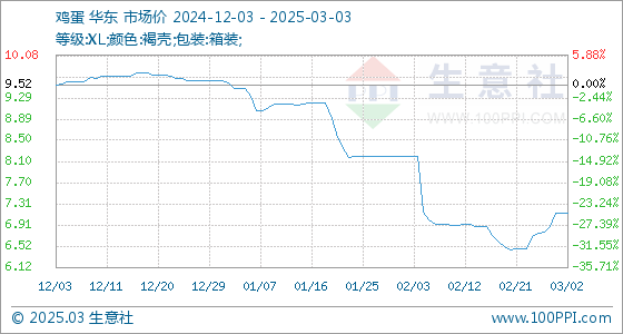 3月3日生意社鸡蛋基准价为7.13元/公斤