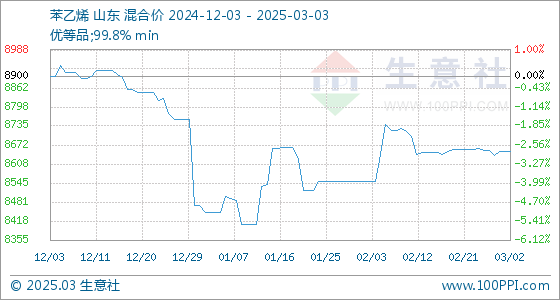 3月3日生意社苯乙烯基准价为8650.00元/吨