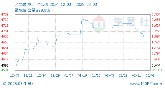 3月3日生意社乙二醇基准价为4681.67元/吨