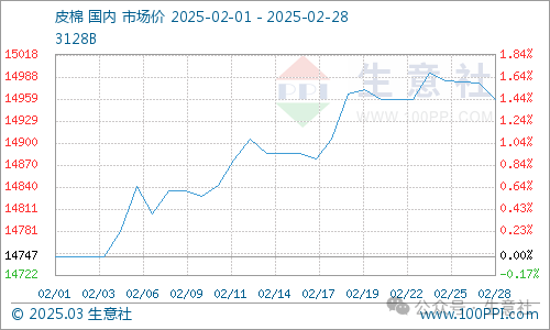 2月国内棉价走势上行,国内宏观环境积极,提振市场信心;叠加国内纺织传统旺季将至,纺企开机率回升,市场预期有所好转,对国内棉价形成有利支撑。据生意社商品行情分析系统,截至2月28日3128B级皮棉现货价格在14958元/吨,较月初上涨1.43%。