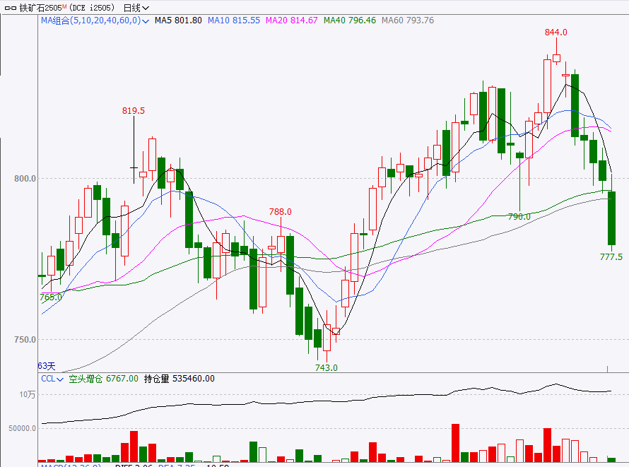 自上周以来,铁矿价格由涨转跌,呈现连续下跌的状态。今日更是跌破780的整数关口,跌幅达到2.81%。铁矿价格持续下跌,背后到底是什么原因呢?