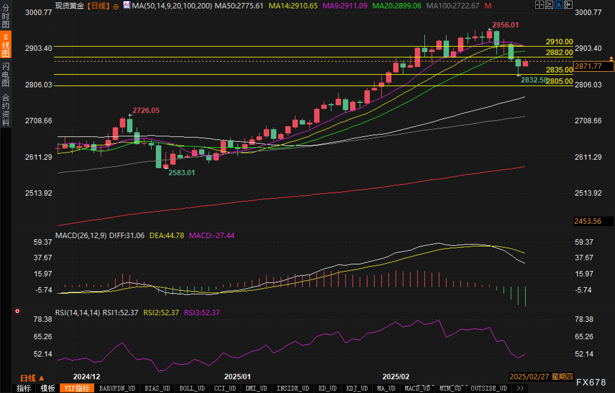 撰写本文时,黄金(XAU/USD)报2871.55美元/盎司,日内上涨0.44%。