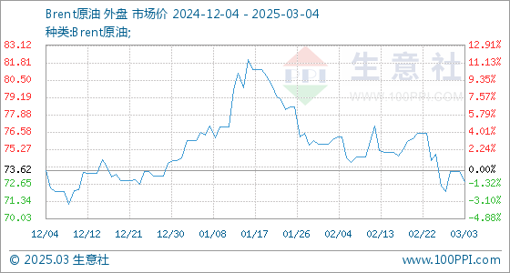 3月4日生意社Brent原油基准价为72.81美元/桶
