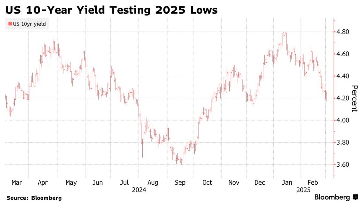 债券收益率是否会继续下跌,可能取决于本周晚些时候公布的2月份劳动力市场数据。