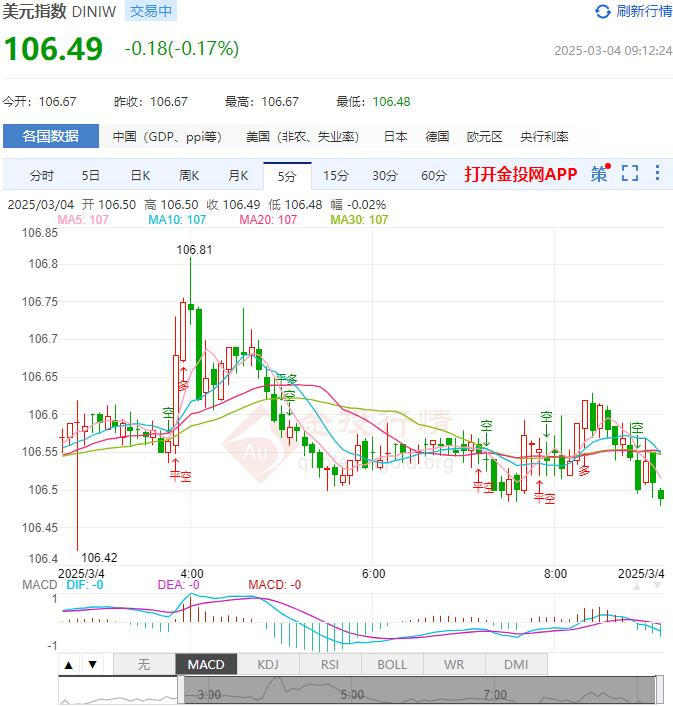 北京时间周二(3月4日)亚盘开盘,美元指数交投于106.48附近,主要非美货币对美元涨跌不一,欧元/美元交投于1.0488附近,英镑/美元徘徊在1.2697附近,澳元/美元徘徊在0.6216附近,美元/加元徘徊在1.4486附近,美元/日元暂处148.95附近。今日基本面关注08:30 澳洲联储公布2月货币政策会议纪要。