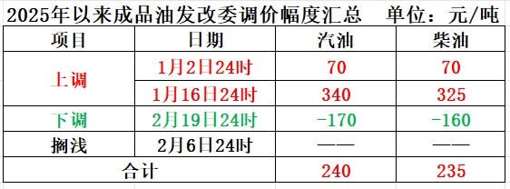 2025年以来,国内成品油零售限价已经历四轮调整窗口,分别为“两涨一跌一搁浅”。调价后,国内汽、柴油价格每吨较去年年底分别上涨240元、235元。