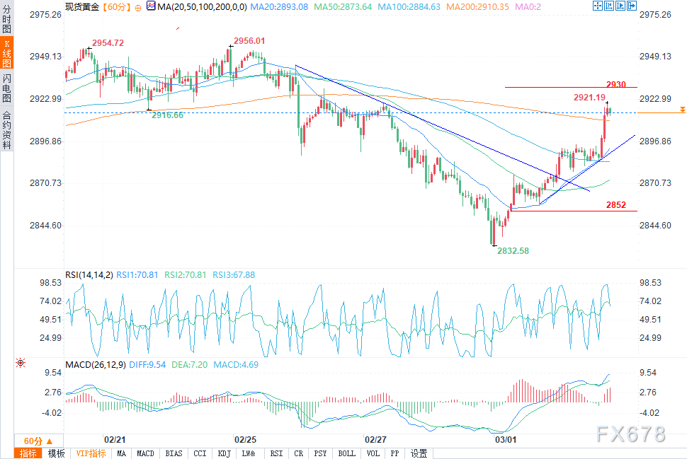 (黄金1小时图来源:易汇通)