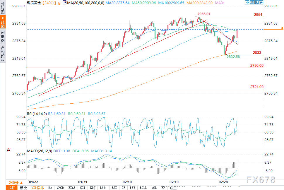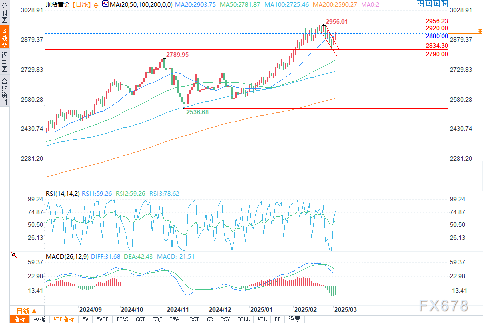 空头则希望价格能够跌破上升趋势线,以重拾市场信心,并目标2790美元支撑水平。红色线标注了今日的日均波动范围。
