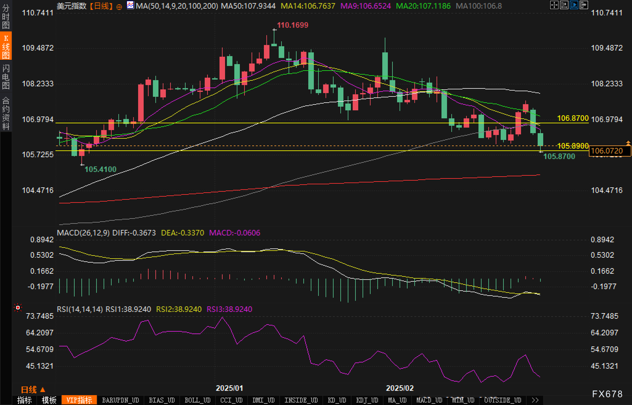 撰写本文时,美元指数报106.0948,日内下跌0.41%。