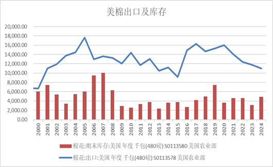 从最新的USDA公布的美棉的情况来看,美棉的库存在4.9百万包,库存水平接近上一次贸易摩擦前的水平,而在出口还未调整的背景下,这个库存已经处在相对的高位,后续中国对美棉加征关税,一定会抑制美棉的出口需求,库存累积基本上可以确定。而在库存压力还是比较大的背景下,加征关税对美棉的影响较大。