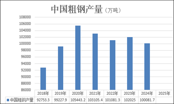 据Mysteel预估,2025年全球铁矿石产量有望同比增加6000-7000万吨达到26.5亿吨。然而,近几年国内坚持执行粗钢平控政策,粗钢产量逐年递减,市场预估2025年中国粗钢产量将跌破10亿吨大关,届时铁矿石供应将进一步宽松。
