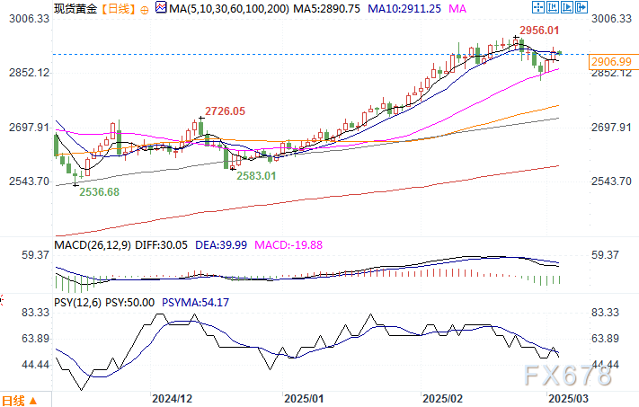 北京时间3月5日10:38现货黄金报2904.59美元/盎司