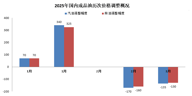 本轮是2025年第五次调价,也是2025年的首次“二连降”。本次调价过后,2025年成品油调价将呈现“两涨两跌一搁浅”的格局。