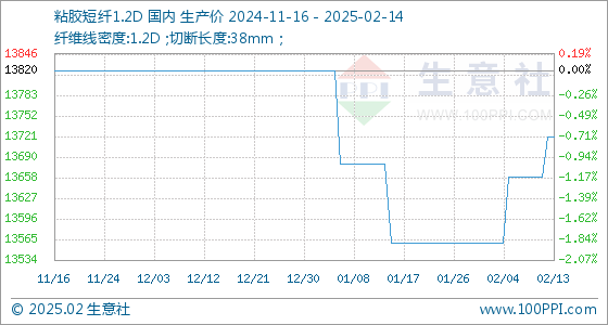 2月14日生意社粘胶短纤1.2D基准价为13720.00元/吨