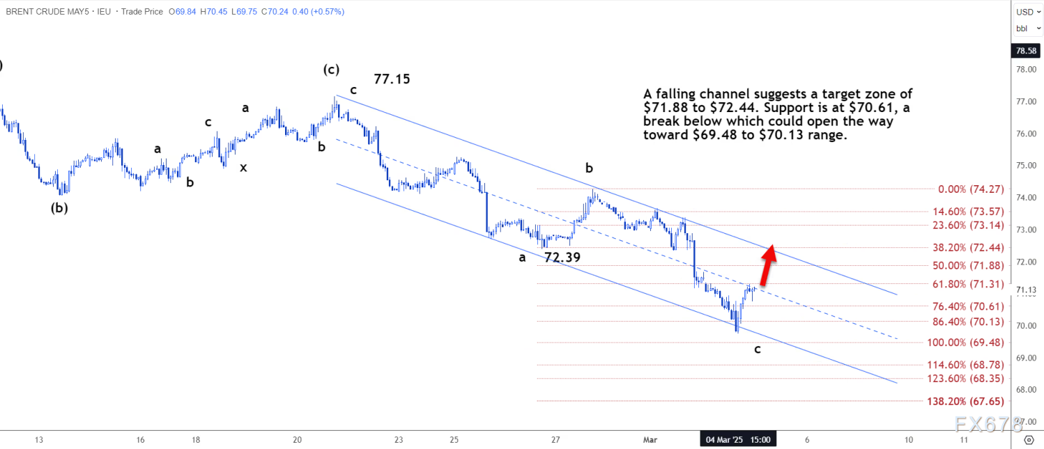 技术分析:布伦特原油可能反弹至71.97-74.01美元区间