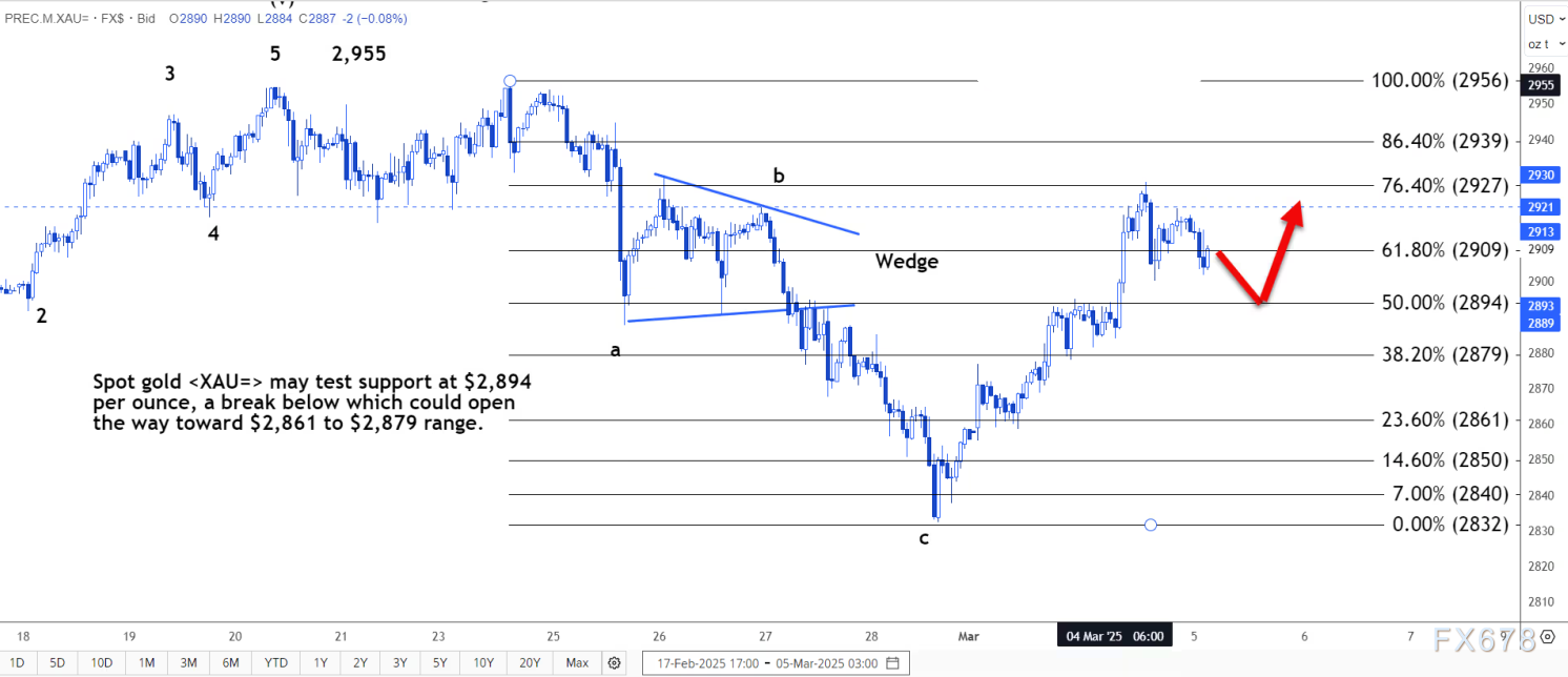 小时图上看,从77.15美元开始的下跌可能暂时结束。它由三波组成,其中a浪和c浪大致相等。
