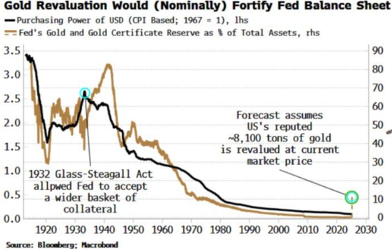 在所有其他条件相同的情况下,黄金重估将使美联储资产负债表上的黄金相对于其他资产达到50年来的最高水平。如果美国重新估价其持有的黄金,金价很可能会上涨。即使我们假定价格再次固定,市场也可能会考虑到政府资产负债表中硬资产价值的上升,而美元是政府资产负债表中的负债。可以想象,购买的加密货币也会被这样看待。